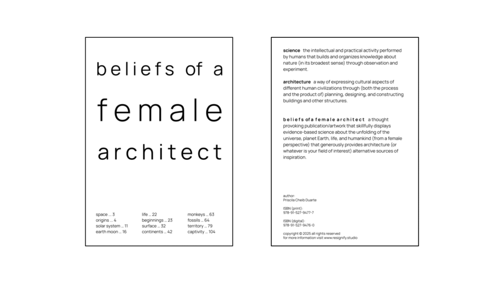Beliefs of a Female Architect is a publication for all humans. Students, academics, scientists, intellectuals, philosophers, architects, engineers, mothers, fathers, and above all, to all individuals who are simply curious about what humans actually (evidence-based) know so far about themselves and their place in the universe.